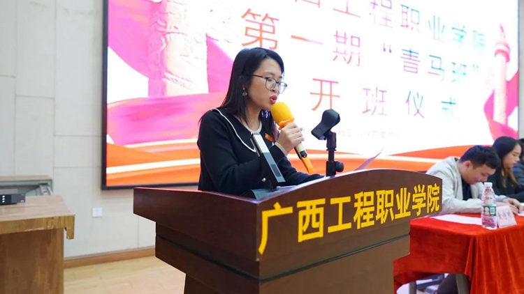 11月4日晚,廣西工程職業(yè)學院第一期青年馬克思主義者培訓班開班儀式在圖文信息大樓報告廳舉行。學校校長助理黃秋霞、黨委辦副主任黃香琴、校團委負責人梁鳳琴及各分團委書記出席開班儀式。儀式由黃詩晴老師主持。