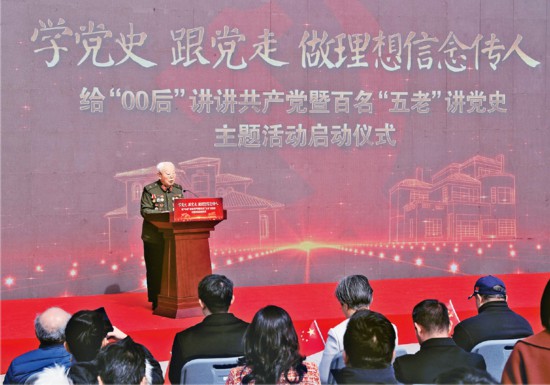 2021年2月23日,“學(xué)黨史 跟黨走 做理想信念傳人——給‘00后’講講共產(chǎn)黨暨百名‘五老’講黨史主題活動(dòng)”在位于上海市嘉定區(qū)的外岡游擊隊(duì)紀(jì)念館正式啟動(dòng)。本次活動(dòng)拉開了上海教育系統(tǒng)黨史學(xué)習(xí)教育的序幕,將組織包括新四軍老戰(zhàn)士在內(nèi)的一批老干部、老戰(zhàn)士、老專家、老教師、老模范走進(jìn)校園,以“校外輔導(dǎo)員”的方式,參與大學(xué)和中小學(xué)的思想政治教育,教育引導(dǎo)青少年始終聽黨的話、永遠(yuǎn)跟黨走。圖為上海市新四軍歷史研究會(huì)名譽(yù)會(huì)長(zhǎng)、九旬新四軍老戰(zhàn)士阮武昌在活動(dòng)現(xiàn)場(chǎng)講述新四軍的抗日故事。 新華社記者 劉穎/攝