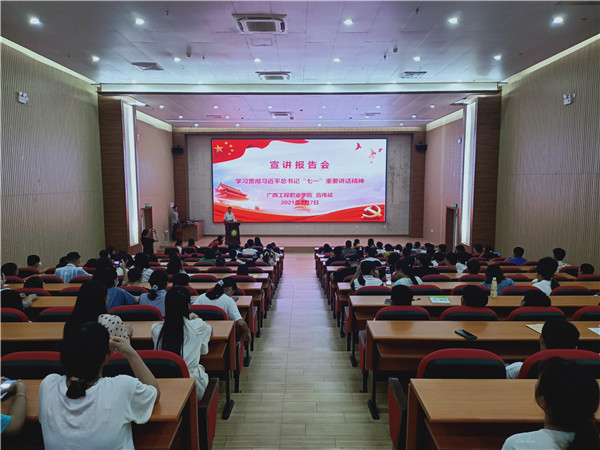 2021年9月7日下午,學(xué)校黨委在圖文信息大樓一樓學(xué)術(shù)報告廳舉行學(xué)習(xí)貫徹習(xí)近平總書記“七一”重要講話精神宣講報告會,學(xué)校黨委宣傳部部長、副校長彭高彬,學(xué)校校長助理黃秋霞、各黨支部書記、各部門負責人、全校師生黨員、教師代表、學(xué)生代表共300多人參加宣講報告會。宣講報告會由黨委辦公室副主任黃香琴主持,學(xué)校黨委書記呂偉斌研究員作宣講報告。