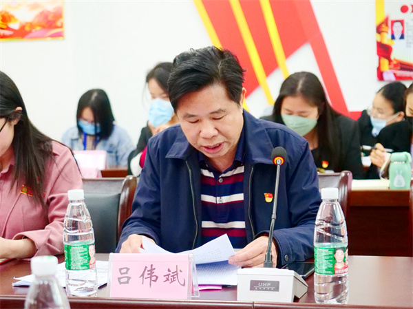 呂書(shū)記強(qiáng)調(diào)指出,班子成員要帶頭進(jìn)一步提高政治站位,全面學(xué)習(xí)貫徹習(xí)近平新時(shí)代中國(guó)特色社會(huì)主義思想,抓好常態(tài)化黨史學(xué)習(xí)教育,深刻感悟“兩個(gè)確立”的決定性意義,深刻感悟黨堅(jiān)持把馬克思主義同中國(guó)具體實(shí)際相結(jié)合、同中華優(yōu)秀傳統(tǒng)文化相結(jié)合的非凡歷程,牢固樹(shù)立正確的黨史觀(guān)。要堅(jiān)持用習(xí)近平新時(shí)代中國(guó)特色社會(huì)主義思想武裝頭腦、指導(dǎo)實(shí)踐、推動(dòng)工作,帶頭真學(xué)、真信、真懂、真用,帶頭牢記我們黨是什么、要干什么這個(gè)根本問(wèn)題,心懷 “國(guó)之大者”,不斷增強(qiáng)“四個(gè)意識(shí)”,堅(jiān)定“四個(gè)自信”,做到“兩個(gè)維護(hù)”。要堅(jiān)持貫徹新發(fā)展理念,履職盡責(zé)、擔(dān)當(dāng)作為,聚焦新冠肺炎疫情防控、保持經(jīng)濟(jì)發(fā)展、深化改革開(kāi)放、維護(hù)社會(huì)穩(wěn)定等正在做的工作,不折不扣把黨中央決策部署落實(shí)到位;帶頭踐行以人民為中心的發(fā)展思想,尊重群眾意愿,為群眾辦實(shí)事解難題,有效保障改善民生,增強(qiáng)人民群眾獲得感幸福感安全感,確保黨永遠(yuǎn)保持同人民群眾的血肉聯(lián)系;要堅(jiān)定扛起管黨治黨的政治責(zé)任,帶頭深刻汲取黨史中正反兩方面經(jīng)驗(yàn),履行全面從嚴(yán)治黨責(zé)任,旗幟鮮明講政治,嚴(yán)守黨的政治紀(jì)律和政治規(guī)矩,落實(shí)中央八項(xiàng)規(guī)定及其實(shí)施細(xì)則精神,持續(xù)用力糾“四風(fēng)”、樹(shù)新風(fēng)。要深入學(xué)習(xí)貫徹習(xí)近平總書(shū)記關(guān)于教育的重要論述,特別是對(duì)發(fā)展職業(yè)教育的重要批示精神,以及視察廣西“4·27”重要講話(huà)精神和對(duì)廣西工作的系列重要指示精神,推進(jìn)黨建工作與業(yè)務(wù)工作深度融合,勇于擔(dān)當(dāng)、攻堅(jiān)克難,統(tǒng)籌抓好新冠肺炎疫情防控和學(xué)校各項(xiàng)工作,確保中央精神和自治區(qū)黨委、百色市委各項(xiàng)決策部署在學(xué)校落地生根,勇毅前行,努力開(kāi)創(chuàng)新時(shí)代廣西工程職業(yè)學(xué)院高質(zhì)量發(fā)展新局面,為建設(shè)新時(shí)代中國(guó)特色社會(huì)主義壯美廣西作出新的更大貢獻(xiàn),以?xún)?yōu)異成績(jī)迎接黨的二十大勝利召開(kāi)。