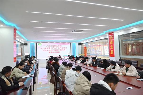 12月21日下午,廣西工程職業(yè)學(xué)院黨委(擴(kuò)大)會議在圖書館一樓大數(shù)據(jù)中心召開,會議傳達(dá)學(xué)習(xí)習(xí)近平總書記視察廣西時(shí)的重要講話精神。學(xué)校黨委副書記黃秋霞,黨委委員,各黨(總)支部書記、副書記、支委,各部門負(fù)責(zé)人參加會議。會議由黃秋霞副書記主持。