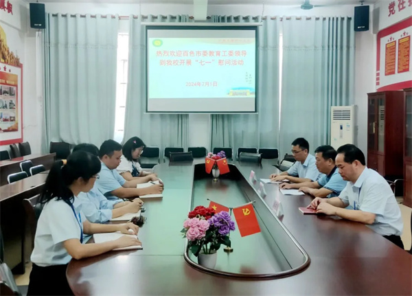 2024年7月1日,是中國(guó)共產(chǎn)黨成立103周年紀(jì)念日。為加強(qiáng)黨內(nèi)關(guān)懷,傳遞組織溫暖,進(jìn)一步弘揚(yáng)黨的光榮傳統(tǒng)和優(yōu)良作風(fēng),7月1日下午,百色市委教育工委委員、市教育局黨組成員、總督學(xué)梁富文和市教育督導(dǎo)中心副主任王小東到我校開(kāi)展“七一”慰問(wèn)困難黨員活動(dòng),帶來(lái)黨和政府的組織關(guān)懷和節(jié)日問(wèn)候。學(xué)校黨委書(shū)記、督導(dǎo)專員蒙本曼陪同慰問(wèn)。