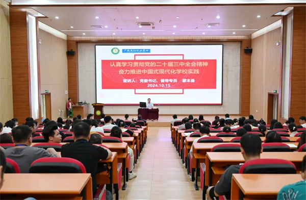 為深入學(xué)習(xí)貫徹黨的二十屆三中全會(huì)精神,10月15日下午,在圖文信息大樓一樓學(xué)術(shù)報(bào)告廳,廣西工程職業(yè)學(xué)院舉行學(xué)習(xí)貫徹黨的二十屆三中全會(huì)精神宣講會(huì)。