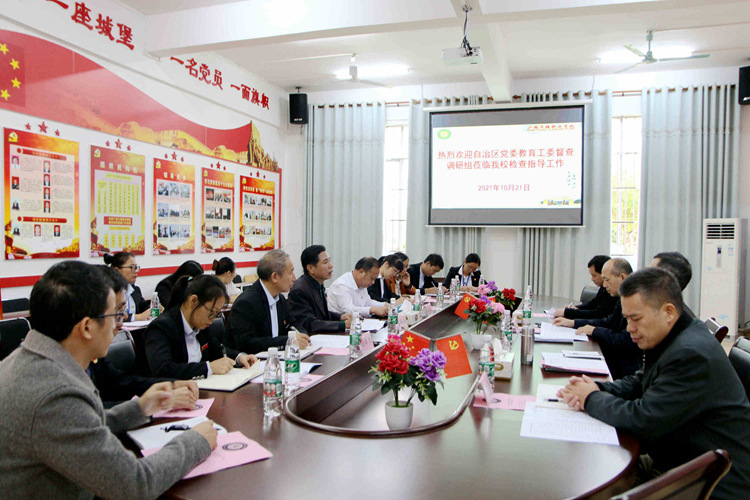 10月21日上午,廣西經(jīng)貿(mào)職業(yè)技術(shù)學(xué)院黨委副書記杜遠(yuǎn)陽一行4人到我校開展全區(qū)高校巡視整改和黨建工作督查調(diào)研,我校黨委書記呂偉斌,紀(jì)委書記李益,黨委副書記胡細(xì)木,各處室負(fù)責(zé)人、各黨支部書記參加了督查調(diào)研座談會(huì)。