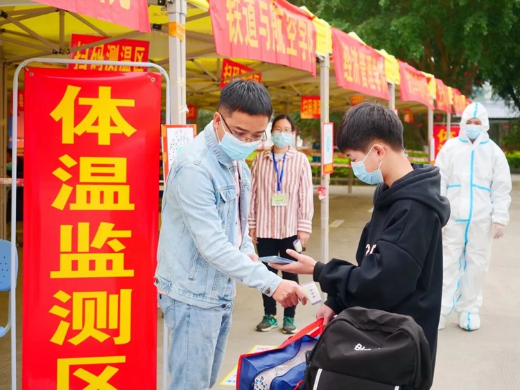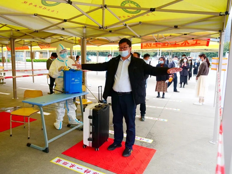 各組工作人員提前到崗,互測體溫并進行記錄。返校學生按照規(guī)定在校門外排隊、掃碼、測溫、行李消殺等。值班人員在指定位置迎接學生入校,并持續(xù)觀看紅外線熱感測溫儀的監(jiān)測數(shù)據(jù),若發(fā)現(xiàn)異常情況,則由校醫(yī)將該學生帶至臨時隔離區(qū),并通知上級防控中心。