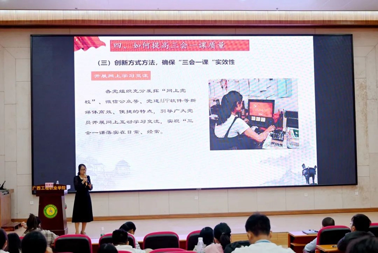 2022年10月11日,廣西工程職業(yè)學(xué)院2022年秋季學(xué)期第一期教師常規(guī)培訓(xùn)在圖文信息大樓一樓報(bào)告廳舉行,學(xué)校黨委委員、學(xué)生工作處副處長(zhǎng)李麗詩(shī)作基層黨建工作實(shí)務(wù)專(zhuān)題培訓(xùn)。