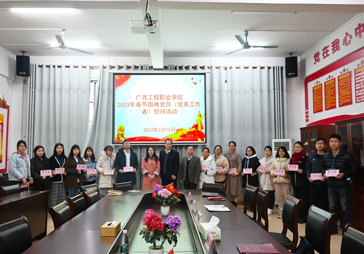 為深入學(xué)習宣傳貫徹黨的二十大精神,充分體現(xiàn)黨組織對困難黨員的關(guān)心愛護,進一步增強黨組織的凝聚力和向心力。2月10日下午,學(xué)校黨委在黨員活動室開展春季慰問困難黨員活動,校黨委書記蒙本曼同志代表學(xué)校黨委對16名困難黨員進行慰問。校黨委副書記黃秋霞,校紀委書記、副校長彭高彬,學(xué)校黨委委員、經(jīng)濟管理學(xué)院院長龐英連出席慰問活動。慰問活動由黃秋霞副書記主持。