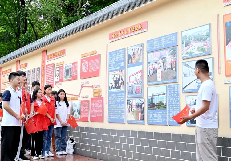 鄧公山紅色主題公園分為“學(xué)史廣場”“百年黨史臺階”“鄧小平銅像”“圓夢廣場”“新時代文化走廊”五大部分。