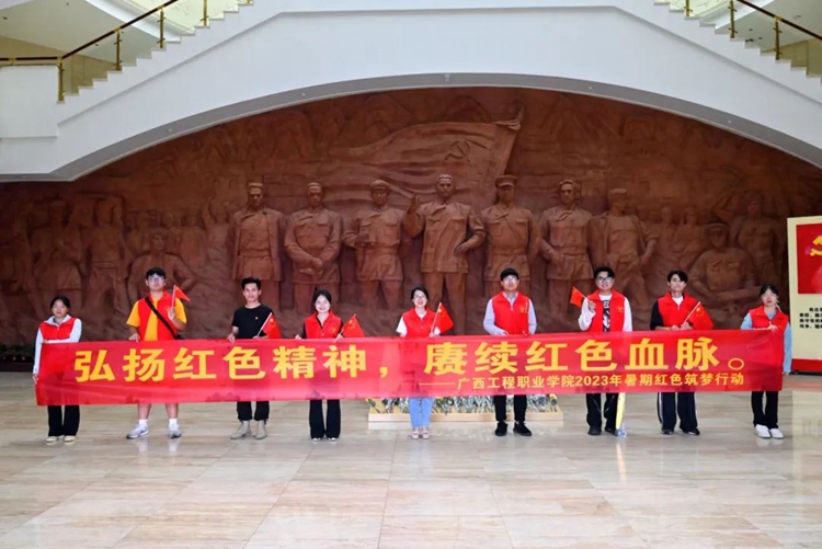 為深入學(xué)習(xí)貫徹習(xí)近平新時代中國特色社會主義思想和黨的二十大精神,貫徹“學(xué)思想、強黨性、重實踐、建新功”的總要求,2023年7月18日,廣西工程職業(yè)學(xué)院“行紅色足跡,筑青春夢想”實踐團在學(xué)校黨委副書記黃秋霞、校團委副書記李麗清的帶領(lǐng)下到百色起義紀(jì)念館、粵東會館、右江革命紀(jì)念館等地開展黨史學(xué)習(xí)教育,追憶革命先輩,傳承紅色基因,砥礪奮勇前行。