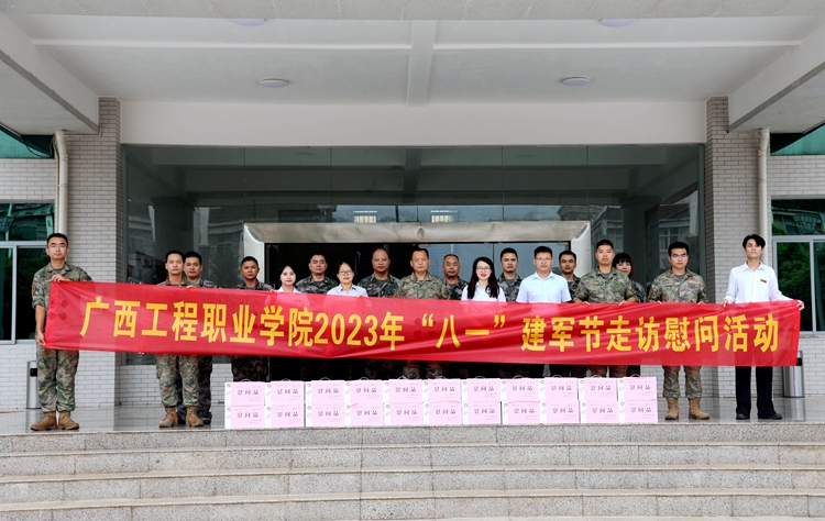 為弘揚擁軍優(yōu)屬的優(yōu)良傳統(tǒng),進(jìn)一步增強國防觀念,賡續(xù)紅色血脈,在熱烈慶祝中國人民解放軍建軍96周年之際,8月1日上午,學(xué)校黨委副書記黃秋霞,黨委委員、學(xué)生工作處副處長李麗詩,學(xué)生工作處資助科科長范玉翠,基建處科長李捷,征兵工作站工作人員等一行到平果市武裝部開展廣西工程職業(yè)學(xué)院2023 年“八一”建軍節(jié)走訪慰問活動。