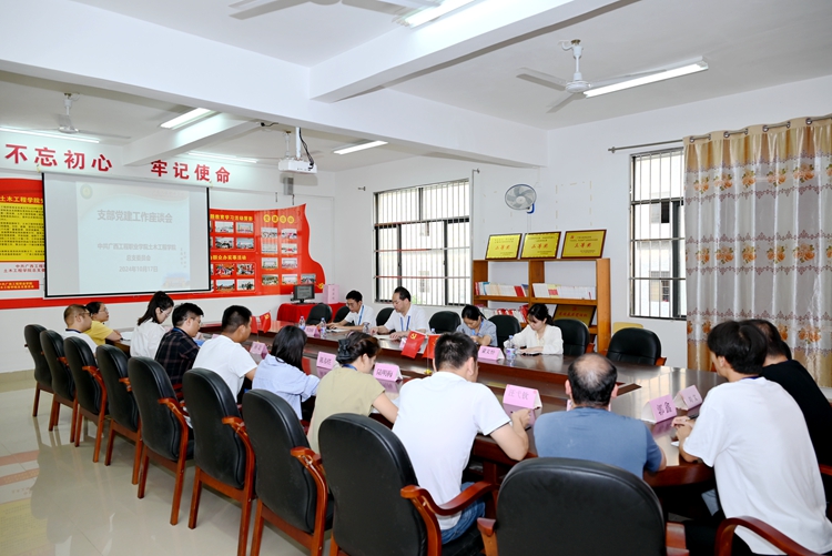 2024年10月17日,黨委書(shū)記、督導(dǎo)專(zhuān)員蒙本曼及黨委委員、組織部部長(zhǎng)、副校長(zhǎng)蔣茂麗等調(diào)研組一行深入土木工程學(xué)院黨總支部調(diào)研指導(dǎo)黨建工作。