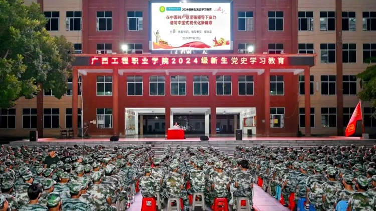 為深入學(xué)習(xí)貫徹習(xí)近平總書記重要指示精神和黨的二十屆三中全會精神,引導(dǎo)新生知史愛黨,知史愛國,增強(qiáng)歷史使命感和責(zé)任感,提升思想政治覺悟,堅(jiān)定不移聽黨話、跟黨走,推動(dòng)優(yōu)秀青年學(xué)子自覺向黨組織靠攏,2024年9月23日晚,學(xué)校在魯班廣場開展2024級新生入黨啟蒙教育專題講座。學(xué)校黨委書記、督導(dǎo)專員蒙本曼作題為《在中國共產(chǎn)黨堅(jiān)強(qiáng)領(lǐng)導(dǎo)下奮力譜寫中國式現(xiàn)代化新篇章》的專題講座。