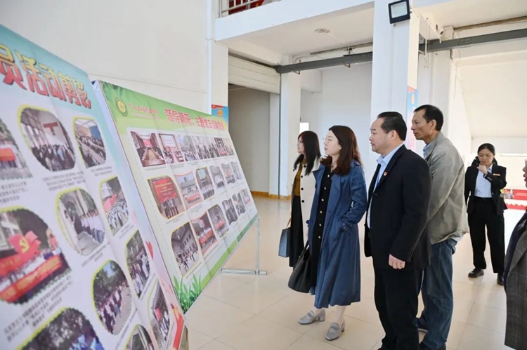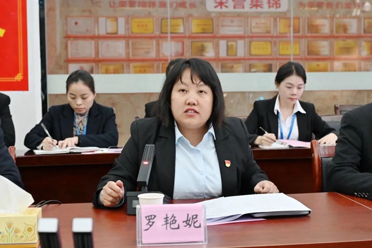 圖為黨委書記、督導(dǎo)專員蒙本曼匯報學(xué)校2024年開展思政理論課建設(shè)工作情況