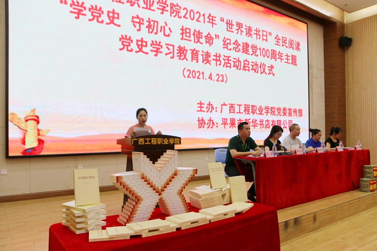 校長助理黃秋霞宣布:廣西工程職業(yè)學(xué)院2021年“世界讀書日”全民閱讀暨“學(xué)黨史 守初心 擔(dān)使命”紀(jì)念建黨100周年主題黨史學(xué)習(xí)教育讀書活動正式啟動!