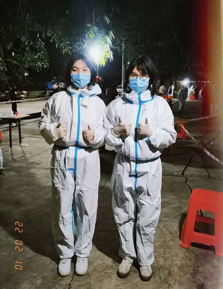 方小婷,中共黨員,教育學(xué)院教師,參加田東縣登瑤族鄉(xiāng)疫情防控志愿服務(wù)工作,協(xié)助核酸檢測采樣登記工作