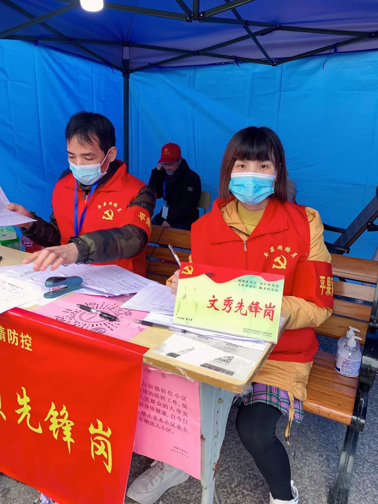 黨委副書記黃秋霞,林萌副校長、黃香琴黨辦副主任及彭麗文、聶紅平、黃官達(dá)等教師黨員堅(jiān)守在黨員先鋒崗疫情防控一線