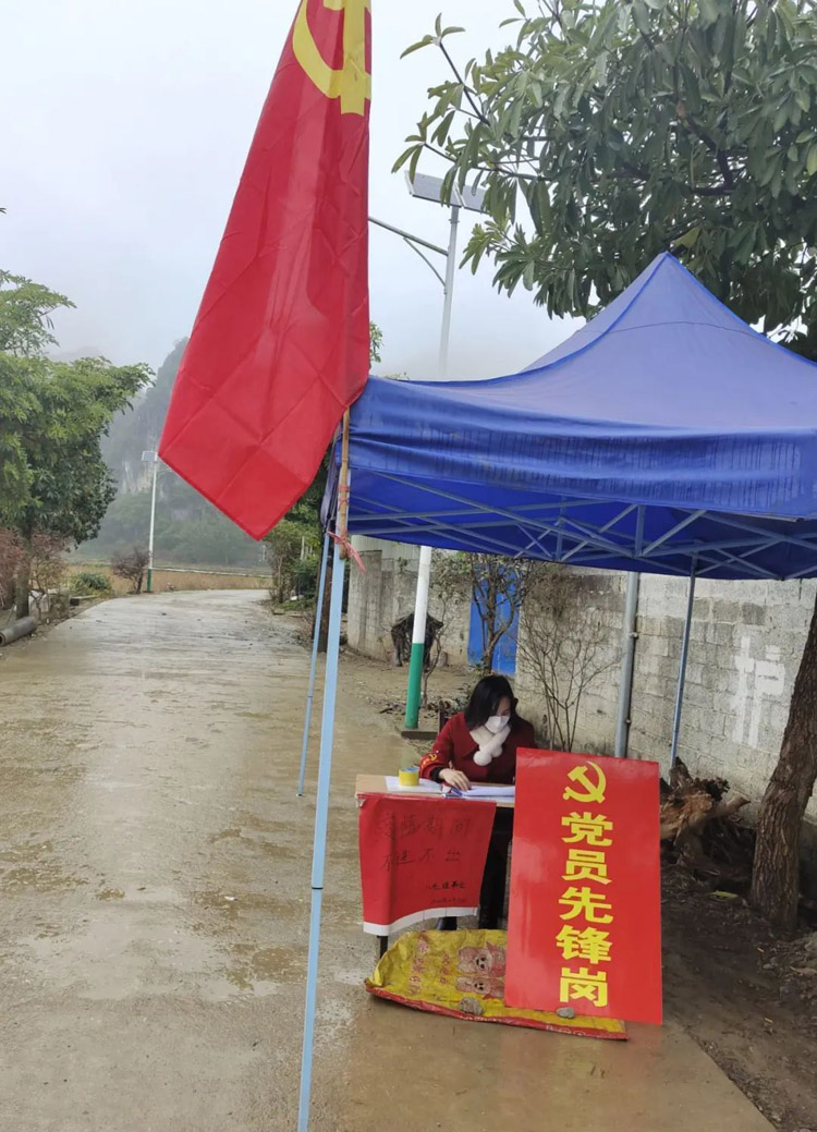 黃麗青,中共黨員,繼續(xù)教育與培訓(xùn)學(xué)院教師,在平果市馬頭鎮(zhèn)那塘村村委參加疫情防控志愿服務(wù)工作