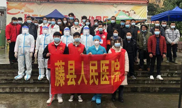 蔣孟霞,中共黨員, 學(xué)校附屬實(shí)驗(yàn)中學(xué)班主任,在平果新安鎮(zhèn)協(xié)助開展疫情防控核酸檢測工作