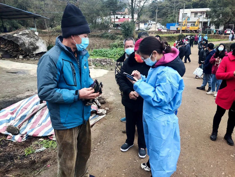 林 霞,學(xué)校財(cái)務(wù)處科長,參加平果市疫情防控工作,登記社區(qū)核酸檢測人員信息