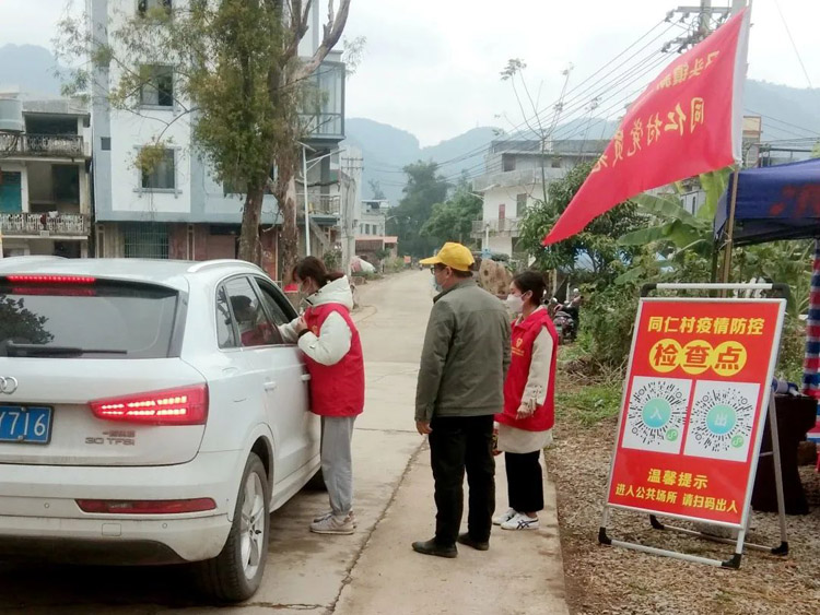陸春桂,土木工程學(xué)院教師, 在平果市黎明鄉(xiāng)蟠桃村洞烈屯參加疫情防控工作志愿服務(wù)活動