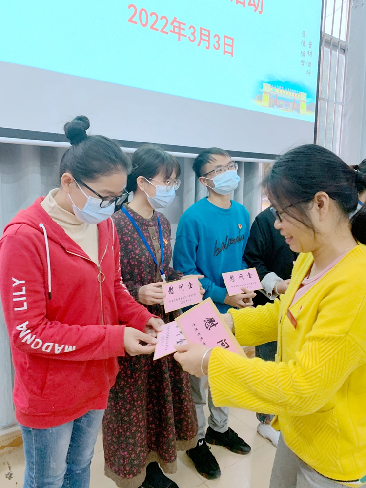 3月3日下午,學(xué)校黨委在黨員活動室開展2022年春節(jié)慰問困難黨員活動,校黨委副書記黃秋霞,紀(jì)委書記、副校長彭高彬等同志代表學(xué)校黨委對10名困難黨員進(jìn)行慰問。