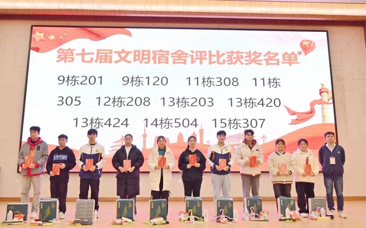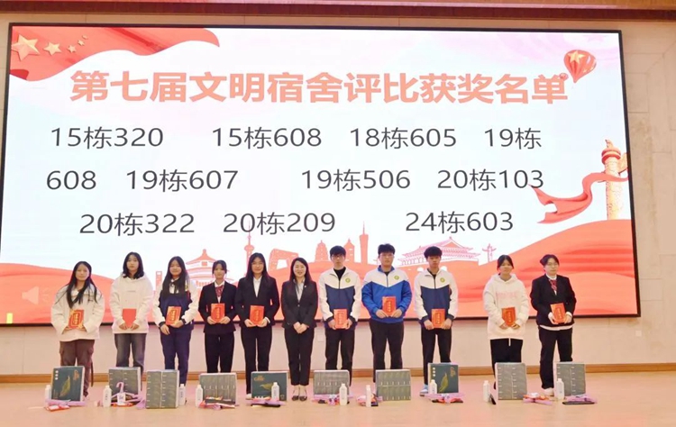 黨委委員、學(xué)工處副處長(zhǎng)李麗詩(shī)宣讀學(xué)校第七屆文明宿舍評(píng)比獲獎(jiǎng)名單,希望廣大同學(xué)要以今天接受表彰的宿舍為榜樣,積極建設(shè)好宿舍文化生活,積極投身于文明校園的建設(shè)中,展現(xiàn)工程學(xué)子的優(yōu)秀風(fēng)采。