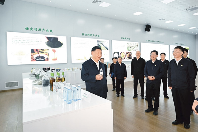 2023年12月14日至15日,中共中央總書記、國(guó)家主席、中央軍委主席習(xí)近平在廣西考察。這是14日下午,習(xí)近平在來(lái)賓東糖鳳凰有限公司考察。