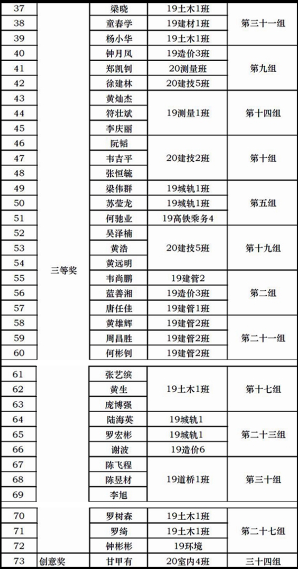 附:第一屆建筑結(jié)構(gòu)模型設(shè)計(jì)大賽獲獎(jiǎng)名單