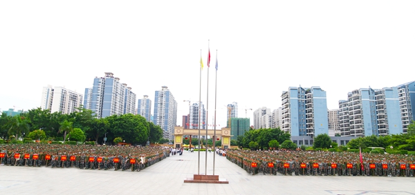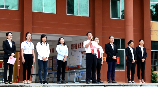 學(xué)校執(zhí)行校長、紀(jì)委書記李益,副校長林艷、林萌、吳先夏,校長助理黃秋霞、黃德偉,各單位負(fù)責(zé)人以及全體在校師生參加了升旗儀式。儀式由黃秋霞助理主持。