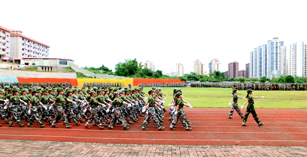 學校副校長羅艷妮作軍訓總結(jié)講話,她代表學校領(lǐng)導向圓滿完成參訓任務(wù)的全體學生和在軍訓中受到表彰的先進集體和個人表示熱烈的祝賀!向付出辛勤汗水的承訓教官、輔導員及其他工作人員表示衷心的感謝!在過去兩周的軍訓中,同學們不怕風雨、烈日,不怕苦,不怕累,戰(zhàn)勝困難,堅持訓練,一切行動聽指揮,增強了國防意識、磨練了意志品質(zhì)、加強了組織紀律性,展現(xiàn)了現(xiàn)代大學生的精神風貌,向?qū)W校遞交了第一份令人滿意的答卷,達到了軍訓的預期目的。