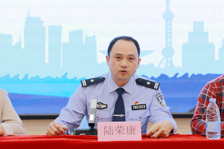 平果市打擊傳銷工作領(lǐng)導(dǎo)小組辦公室副主任、公安局副局長(zhǎng)陸榮康作防范傳銷知識(shí)講座