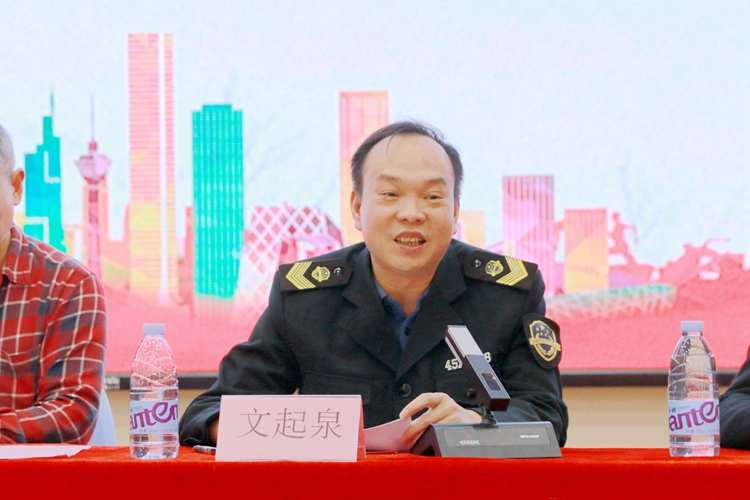 平果市打擊傳銷工作領(lǐng)導(dǎo)小組辦公室副主任、市場(chǎng)監(jiān)督管理局副局長(zhǎng)文起泉作防范傳銷知識(shí)講座
