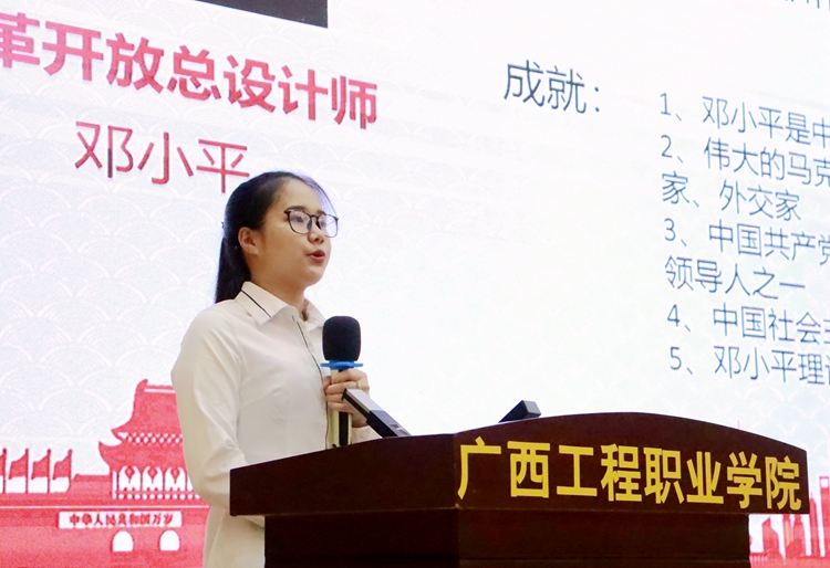 此比賽系廣西工程職業(yè)學(xué)院、廣西建設(shè)職業(yè)技術(shù)學(xué)院、百色職業(yè)學(xué)院、廣西安全工程職業(yè)技術(shù)學(xué)院、廣西自然資源職業(yè)技術(shù)學(xué)院聯(lián)合舉辦的首屆“學(xué)‘四史’守初心,揚(yáng)青春擔(dān)使命”大學(xué)生理論宣講比賽活動(dòng)。我校舉行了校內(nèi)選拔賽。
