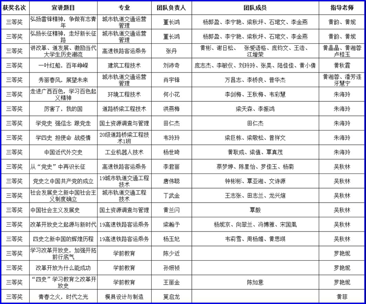 附:廣西高校思政課共建第六組首屆大學(xué)生理論宣講比賽廣西工程職業(yè)學(xué)院選拔賽獲獎(jiǎng)名單