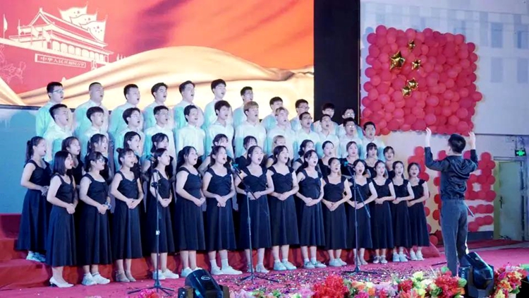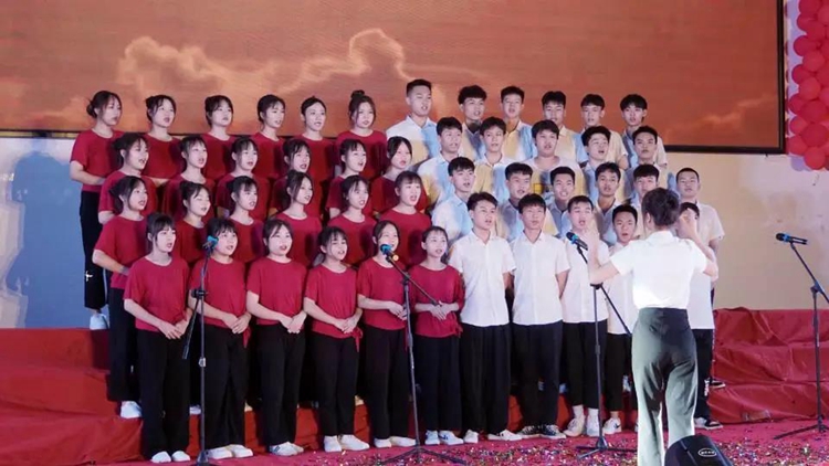 來自各二級學院的十五支隊伍演唱的紅色曲目慷慨激昂、經(jīng)久不衰,青年學子用歌聲表達了對黨真摯的祝福?!段业闹袊摹?、《保衛(wèi)黃河》、《我和我的祖國》、《中國人民解放軍軍歌》、《唱支山歌給黨聽》、《強國一代有我在》等經(jīng)典歌曲鏗鏘有力、飽含深情,唱出了廣大青年對中國共產(chǎn)黨的衷心擁護和聽黨話、跟黨走的堅定信念,唱出了師生為實現(xiàn)中華民族偉大復興砥礪前行的決心和氣魄。