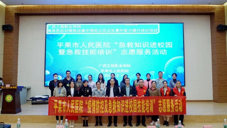 為進(jìn)一步提升學(xué)生應(yīng)對(duì)突發(fā)公共衛(wèi)生事件的能力,鞏固專業(yè)知識(shí),有效預(yù)防、及時(shí)控制和消除突發(fā)公共衛(wèi)生事件的危害,保障乘客身體健康與生命安全,維護(hù)正常的社會(huì)秩序。我校鐵道與航空學(xué)院聯(lián)合平果市人民醫(yī)院于12月17日下午在校圖文信息大樓三樓學(xué)術(shù)報(bào)告廳開展乘務(wù)員應(yīng)對(duì)高鐵運(yùn)營(yíng)中突發(fā)公共衛(wèi)生事件能力提升培訓(xùn)活動(dòng)暨平果市人民醫(yī)院“急救知識(shí)進(jìn)校園”、“急救技能培訓(xùn)”志愿服務(wù)活動(dòng) 。