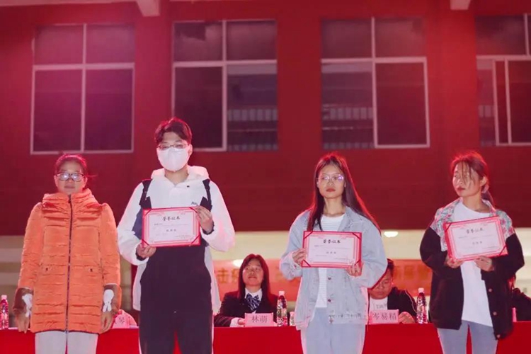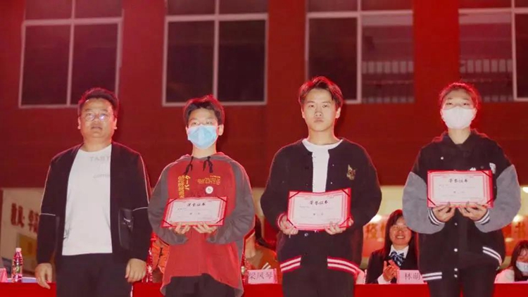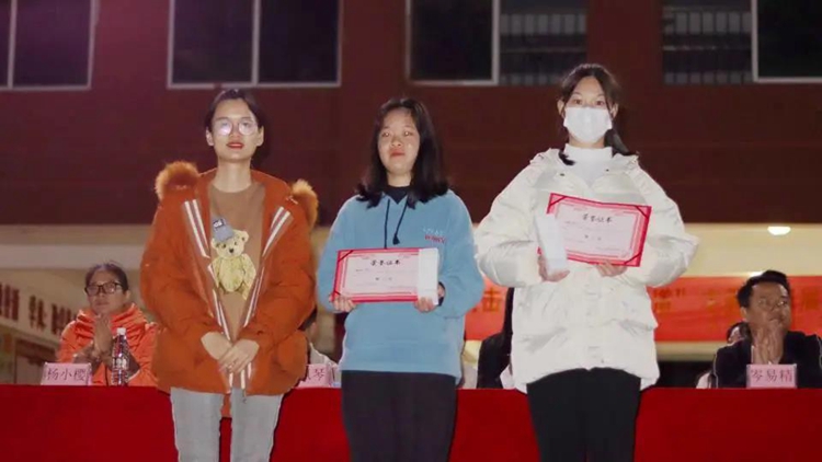 校校團(tuán)書記委梁鳳琴為獲得三等獎的學(xué)生代表頒獎