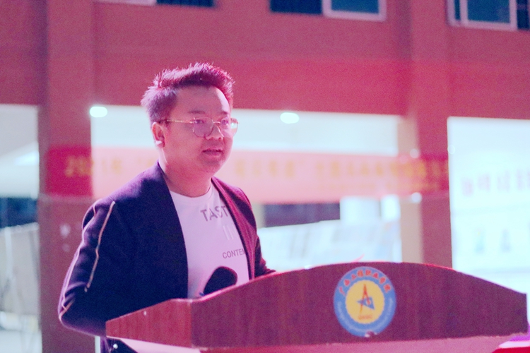 藝術(shù)設(shè)計學(xué)院副院長岑易精宣布廣西工程職業(yè)學(xué)院2021年“抗擊疫情、筆尖有道”書畫展開幕