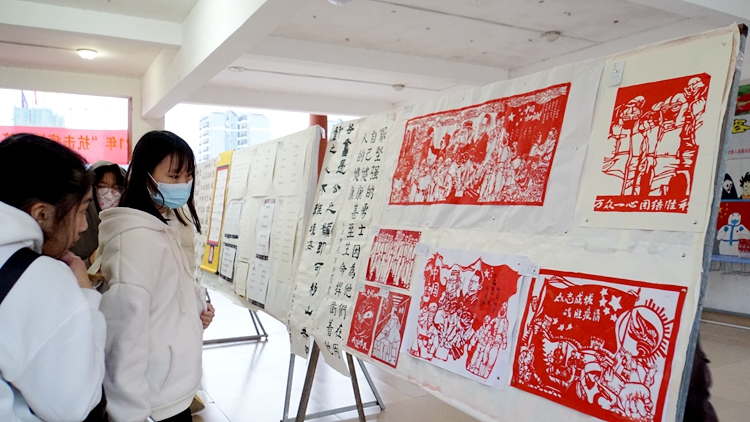 此次參展作品主題鮮明,內(nèi)涵豐富,形式多樣,分別展出書法、手工剪紙、繪畫等作品,吸引眾多的師生前來觀看。工程學(xué)子們用不同形式的藝術(shù)作品致敬英雄、鼓舞斗志,表達(dá)了廣大青年學(xué)生的赤子之心、愛國之情。