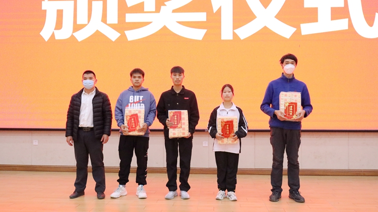 校長(zhǎng)助理覃清香為榮獲二等獎(jiǎng)的文明宿舍代表頒獎(jiǎng)