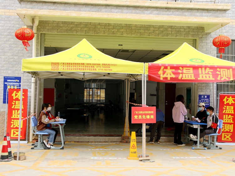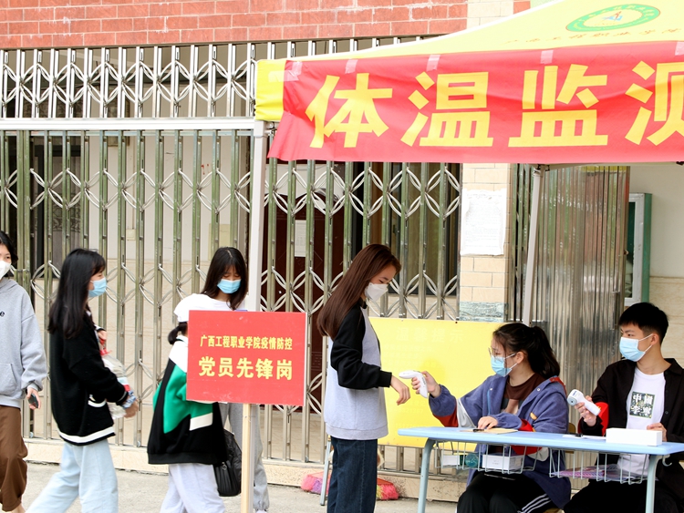 學(xué)校在食堂、學(xué)生宿舍區(qū)設(shè)置黨員先鋒崗,開展測溫等疫情防控工作
