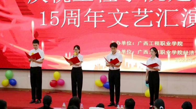 在這個(gè)生機(jī)勃勃,草長(zhǎng)鶯飛的季節(jié),迎來(lái)了廣西工程職業(yè)學(xué)院十五周年校慶。2022年4月17日下午,經(jīng)濟(jì)管理學(xué)院在圖文信息大樓報(bào)告廳舉行“慶建團(tuán)百年,喜迎二十大”建校十五周年校慶文藝匯演。