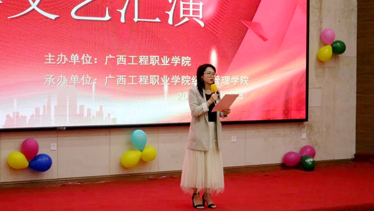 經(jīng)濟(jì)管理學(xué)院院長(zhǎng)龐英連宣布晚會(huì)開始后,精彩的節(jié)目逐一上演,同學(xué)們以深情的朗誦、優(yōu)美的舞蹈,動(dòng)聽的歌聲慶祝廣西工程職業(yè)學(xué)院建校十五周年,喜迎二十大,獻(xiàn)禮建團(tuán)一百周年。