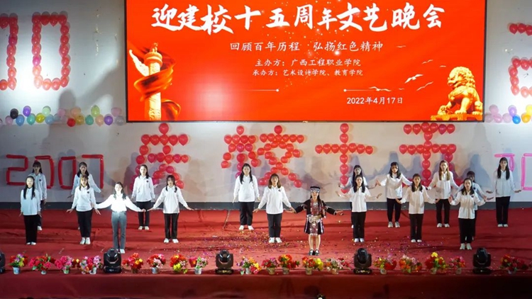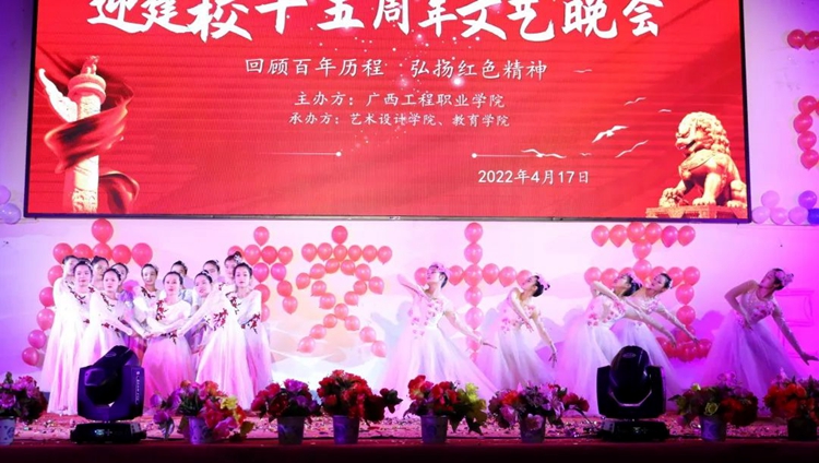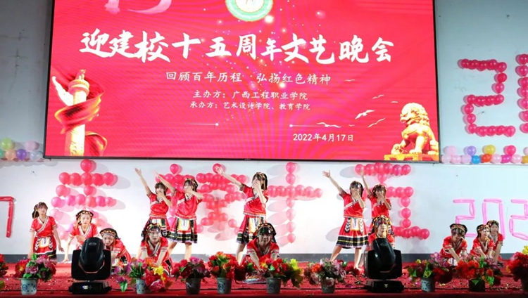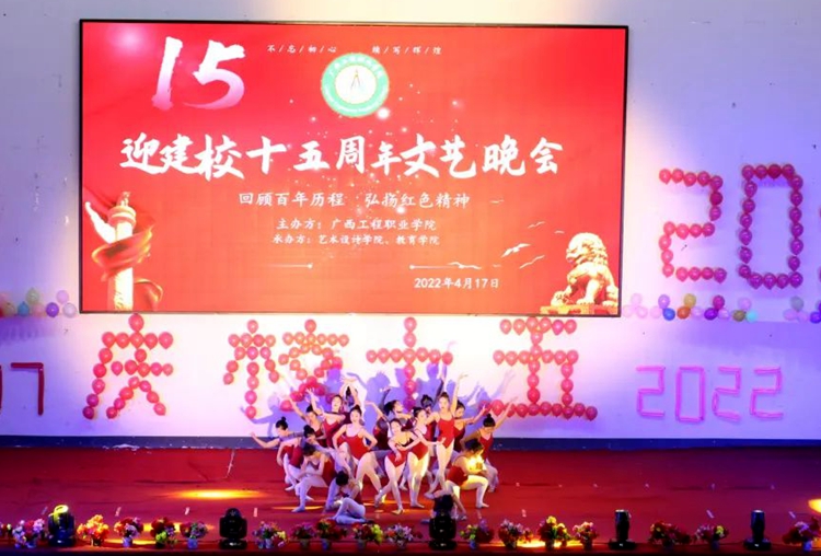 2022年4月17日晚,藝術(shù)設(shè)計(jì)學(xué)院、教育學(xué)院在體育館聯(lián)合舉辦“回顧百年歷程,弘揚(yáng)紅色精神”迎建校十五周年文藝晚會(huì),獻(xiàn)禮建團(tuán)100周年,喜迎黨的二十大召開。