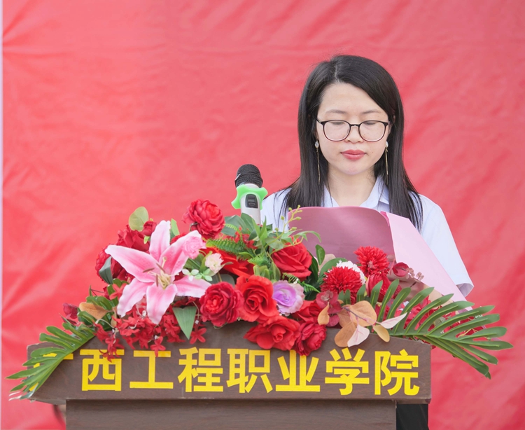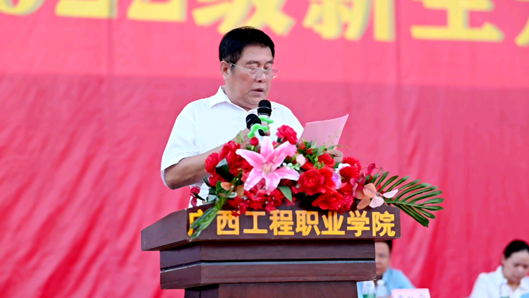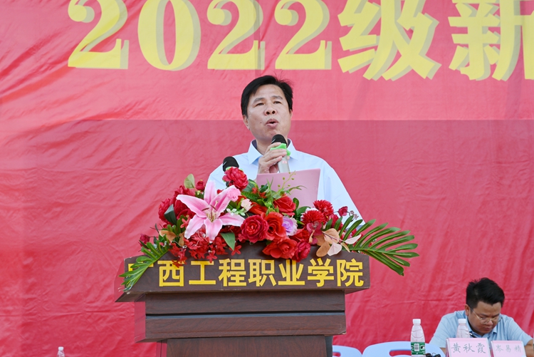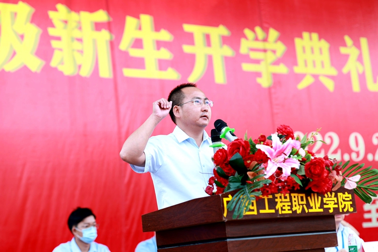 紀委書記、副校長彭高彬帶領(lǐng)全體新生進行入學宣誓。全體新生以青春之名,宣誓表決心:我是廣西工程職業(yè)學院的學生,我將胸懷祖國,遵紀守法,嚴守校紀校規(guī),尊師愛校,勤奮好學,團結(jié)友愛;明德修身,誠以待人,毅以處事;謹記“厚德博學,至材健行”校訓,弘揚“熔煉工匠精神,鑄就一流技藝”的學校精神,緊跟時代步伐,勇?lián)鷼v史使命,立志成才,報效祖國。他們以鏗鏘有力的誓言奏響新時代青年的自強不息、學習向未來的最強音。