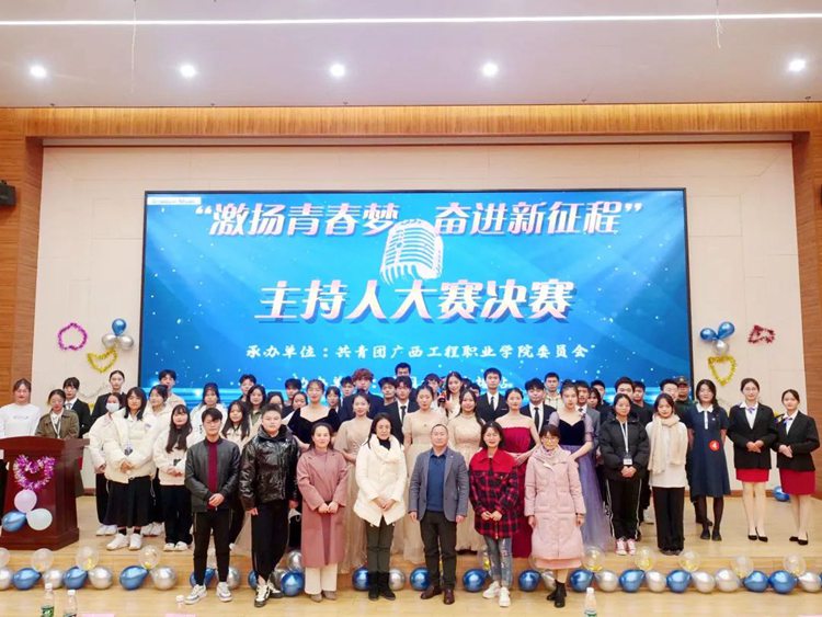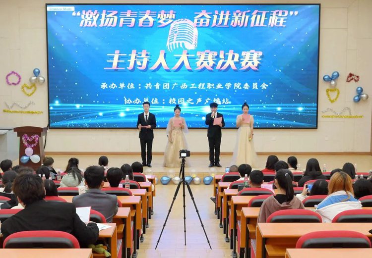 為學(xué)習(xí)宣傳貫徹黨的二十大精神,用語言生動描繪新時代黨和國家取得的輝煌成就,用聲音精彩呈現(xiàn)黨和國家在推進(jìn)偉大復(fù)興新征程中的新氣象、新精神。同時,為了營造富有激情、青春的校園文化氛圍,提高學(xué)生的人文素質(zhì)和邏輯思辨、溝通表達(dá)能力,廣西工程職業(yè)學(xué)院于12月8日晚在圖文信息大樓五樓學(xué)術(shù)報告廳舉辦“激揚(yáng)青春夢,奮進(jìn)新征程”主持人大賽決賽。
