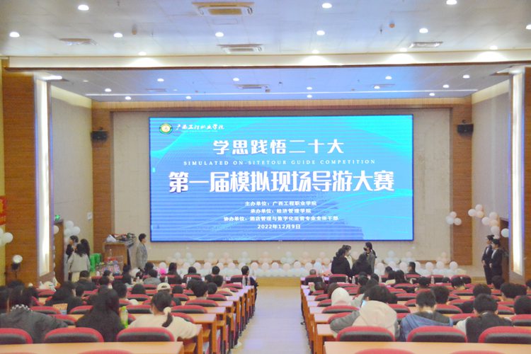 為深入學(xué)習(xí)宣傳黨的二十大精神,講好中國故事,展現(xiàn)專業(yè)素養(yǎng),我校經(jīng)濟管理學(xué)院2022年第一屆“模擬現(xiàn)場導(dǎo)游大賽”于12月9日在圖文信息大樓報告廳舉行,比賽主題為:學(xué)思踐悟二十大 中國風(fēng)采“游”我來說。