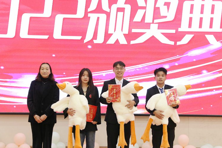 經(jīng)管學(xué)院黨支部副書記廖嬌為榮獲三等獎的選手頒獎