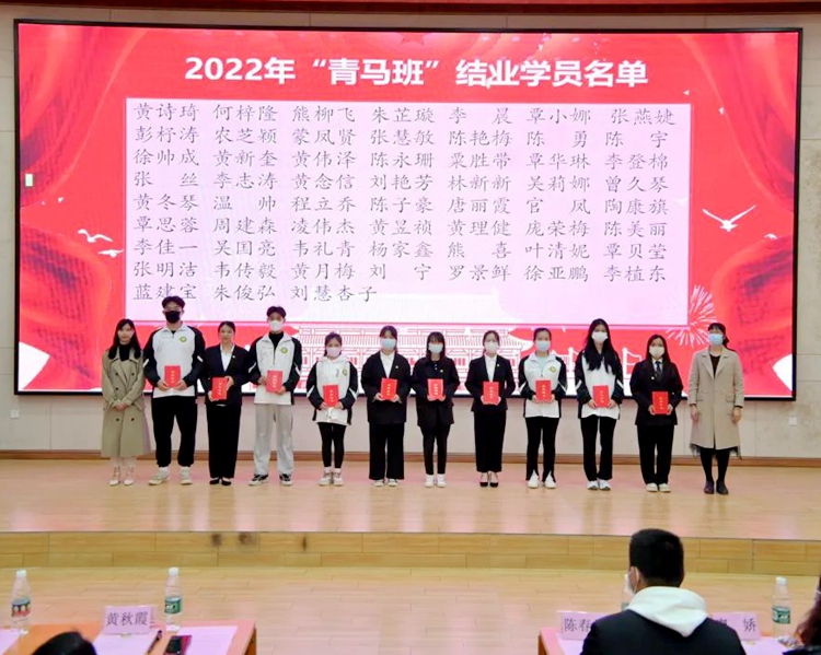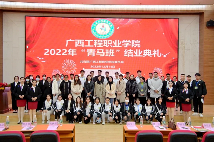 2022年12月14日晚,廣西工程職業(yè)學(xué)院在圖文信息大樓一樓學(xué)術(shù)報告廳舉行2022年“青馬班”的結(jié)業(yè)典禮。“青馬班”學(xué)員們將始終牢記習(xí)近平總書記對青年的殷殷囑托,持續(xù)加強習(xí)近平新時代中國特色社會主義思想和黨的二十大精神學(xué)習(xí),堅定不移聽黨話、跟黨走,做“有理想、敢擔當、能吃苦、肯奮斗”新時代好青年,奮進新征程,詮釋新使命,創(chuàng)造新業(yè)績。