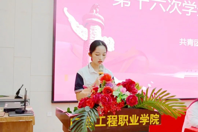 大會(huì)主席團(tuán)執(zhí)行主席黃詩琦作廣西工程職業(yè)學(xué)院第十五屆學(xué)生會(huì)工作報(bào)告